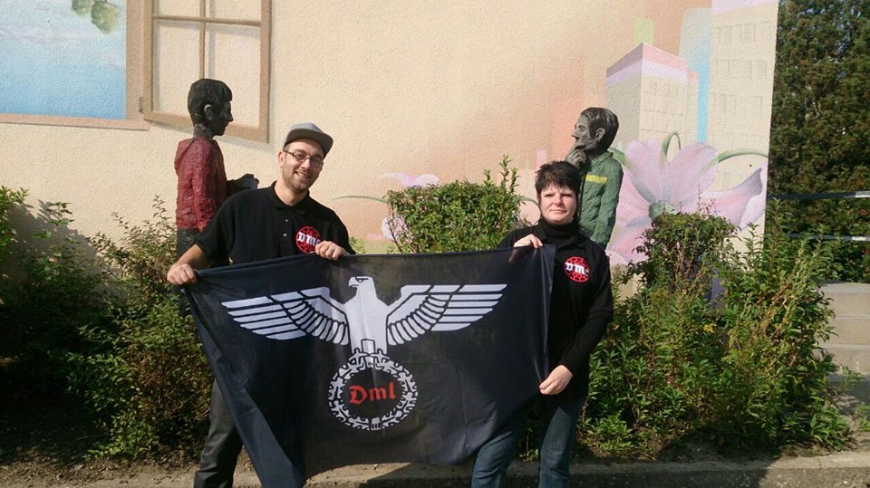 Eine weitere DML-Aktivistin ist Susanne Ihde aus Malchin. Diese posiert beispielsweise zusammen mit einem Kameraden vor einer sozialen Einrichtung der Caritas in Greifswald mit einer DML e.V. Fahne. Das sich die Neonazis hier eine Einrichtung für ihre Fahnenaktion ausgesucht haben, die sich mit der Integration von Geflüchteten befasst ist kein Zufall. Aktionen wie diese stellen wiedereinmal den fehlgeleiteten Sozialneid von Neonazis gegen Refugees dar. (Foto: Susanne_Ihde.jpg)