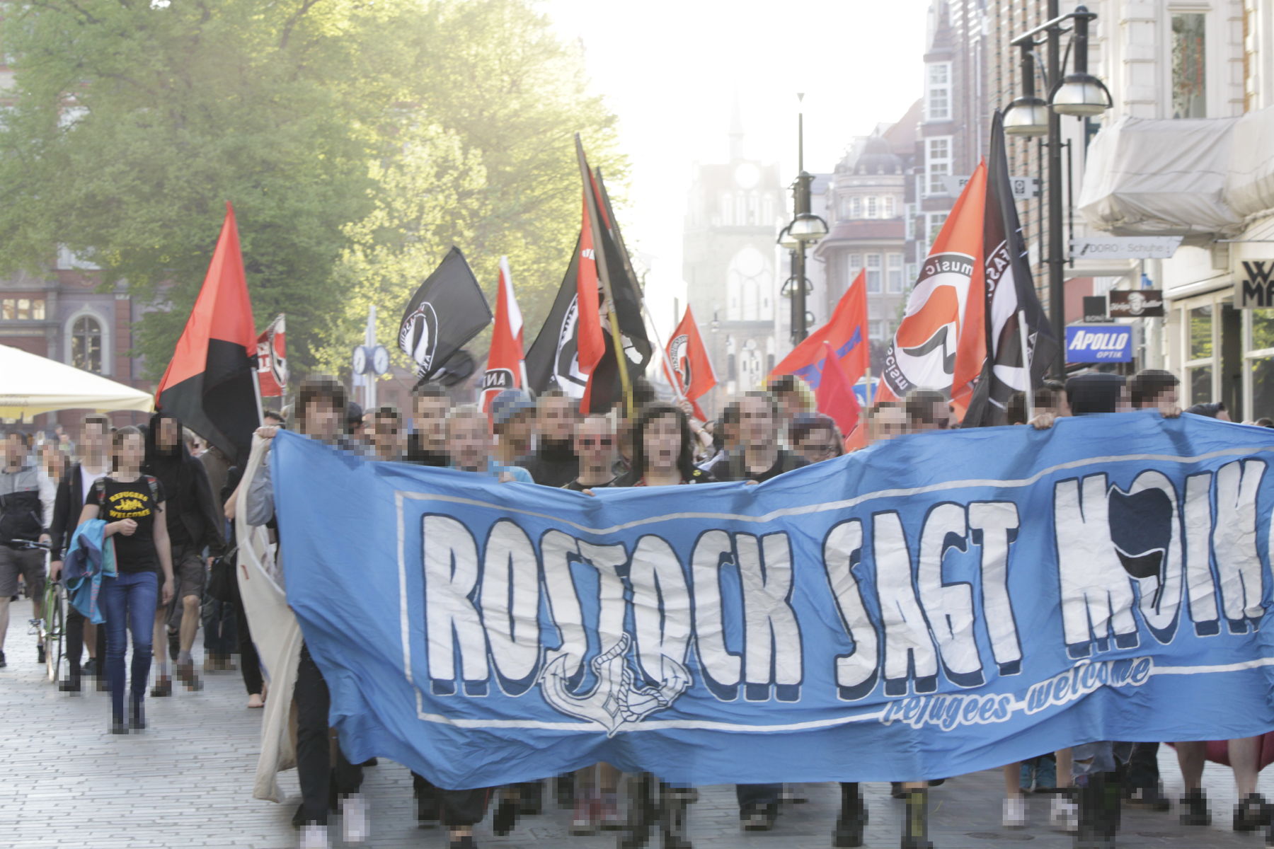 Gegen 19.00 Uhr sammelten sich etwa 250 Menschen in der Rostocker Kröpeliner Tor Vorstadt. Sie zogen mit Fahnen, Transparenten und einem mobilen Soundsystem vom Studentenviertel zum Rostocker Marktplatz. Im Zuge der unangemeldeten Demonstration wurden zahlreiche Flugblätter verteilt. Viele Menschen applaudierten dem Aufzug oder schlossen sich spontan an. Am Marktplatz, nahe der Rostocker Ausländerbehörde, löste sich der Umzug auf. Die Veranstaltung konnte die gesamte Strecke von der Polizei unbehelligt gehen, lediglich am Endpunkt erschien ein Streifenwagen, dessen Besatzung das Geschehen in sicherem Abstand dokumentierte.
