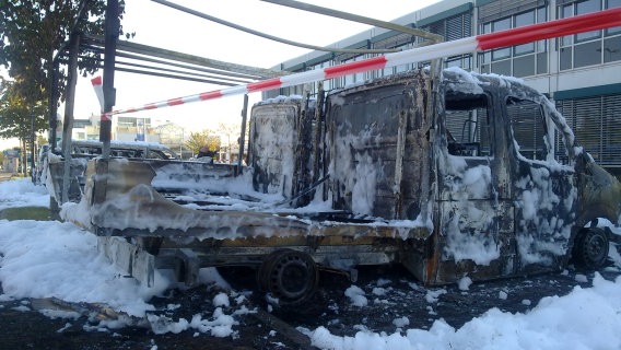 Die fünf Kleinbusse und zwei Kleintransporter brannten fast vollständig aus. Der Vorfall ereignete sich gegen 2.00 Uhr in einem Gewerbegebiet in der Südstadt. Die Sicherung und Auswertung aller Spuren dauerte bis zum Dienstagnachmittag. Das Lagezentrum des Innenministeriums beziffert den Schaden durch das Feuer inzwischen auf 130.000 Euro.