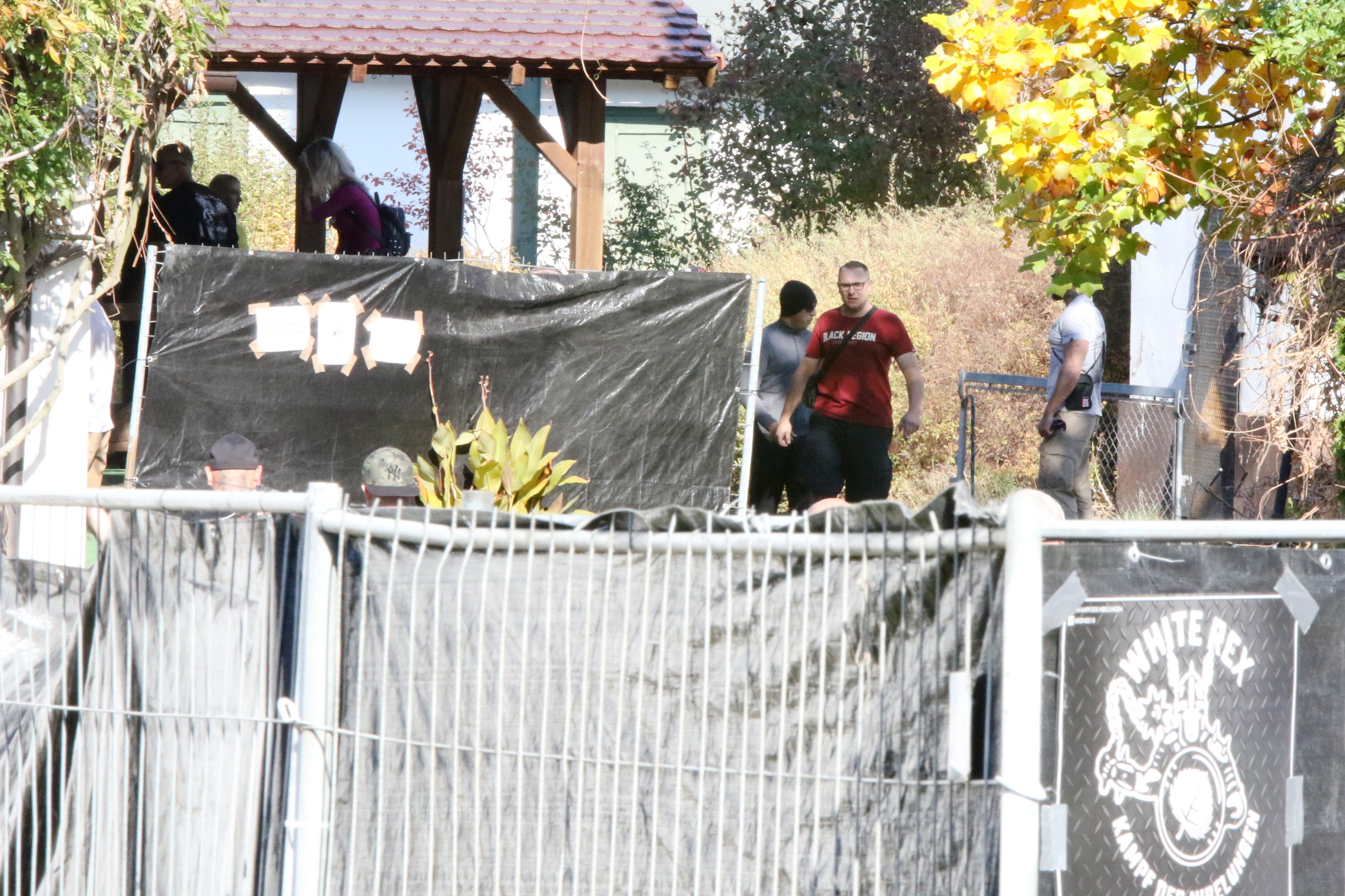 1.v.l., hinter dem Bauzaun versteckt: Stefan Baer, 1.v.r. Robert Jäsche (Quelle: Pixel-Archiv)