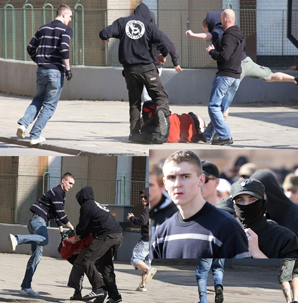Der Profi-MMA-Kämpfer Petr Beranek, hier zu sehen bei einem Angriff im Rahmen der Ausschreitungen gegen Sinti und Roma 2009 im tschechischen Prerov, gehört ebenfalls dem „White Rex – Czech Team“ an (Quelle: antifa.cz)