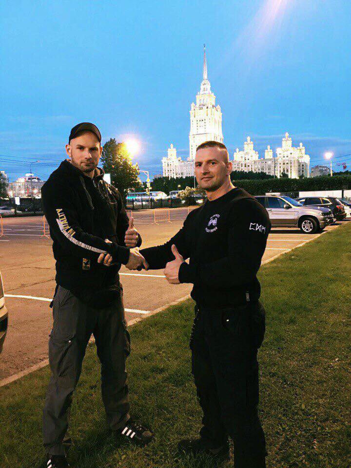 Philipp Liebetrau (links) zu Gast in Moskau bei Maxim Savelyev von der Neonazi-Trainingsgrupe „PPDM-Father Frost“ (Quelle: Screenshot Facebook)
