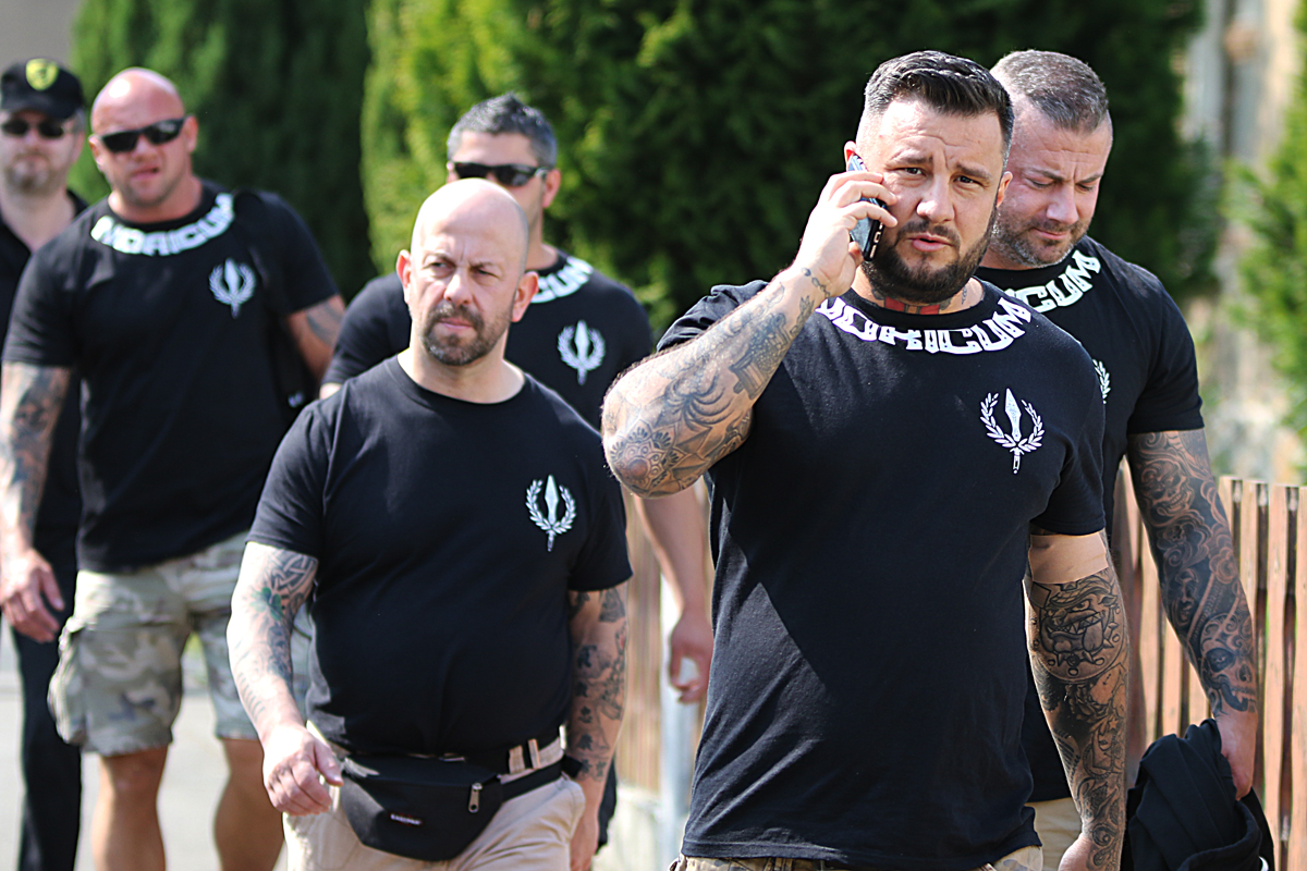 Roman Blaschek vom Team „Noricum“ mit „Greifvogel Wear“-T-Shirt in Ostritz 2018 (Bild: EXIF-Recherche)