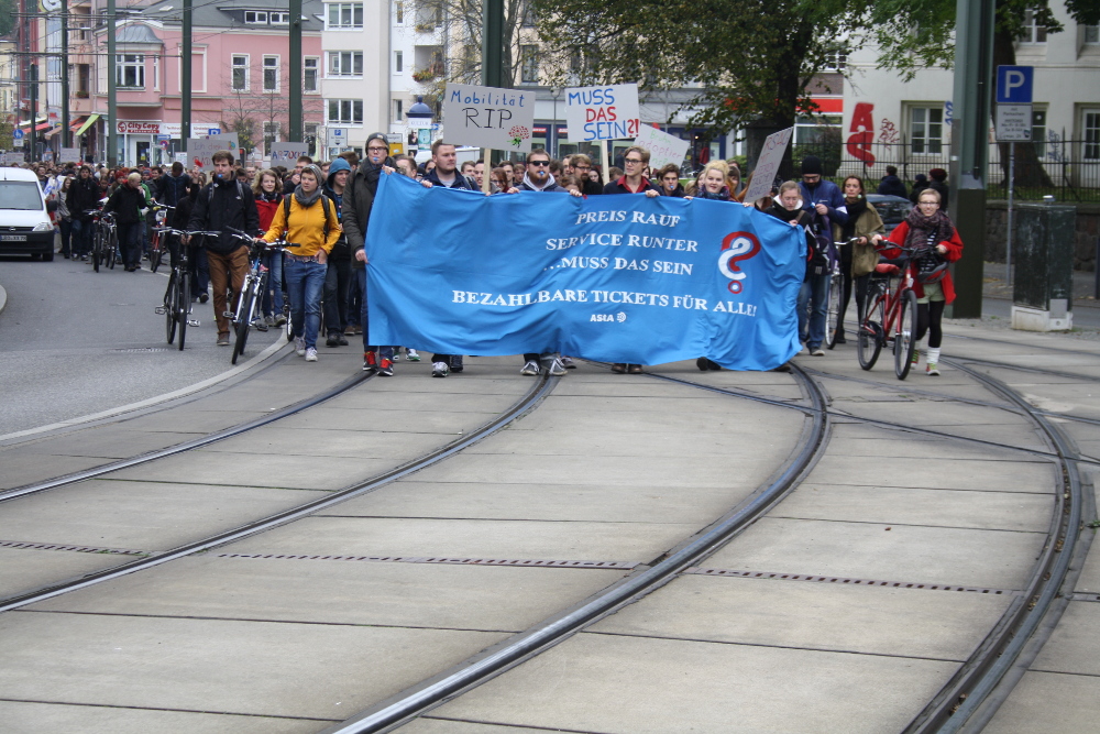 Die Ankündigung der RSAG, die Fahrpreise in 2015 wieder anzuheben, hat Widerspruch ausgelöst, der mittlerweile über die Protestnoten einzelner linker Parteien und Sozialverbände hinaus geht. Die Student_innen beginnen sich gegen die Fahrpreiserhöhungen zu organisieren. Nun ist es wichtig die ebenfalls betroffenen Menschen zu aktivieren und den Protest zu vereinen. So kann wahrnehmbarer und wirkungsvoller Widerstand gegen die Einschränkung der Bewegungsfreiheit von finanziell schlecht gestellten Menschen auf lokaler Ebene funktionieren.