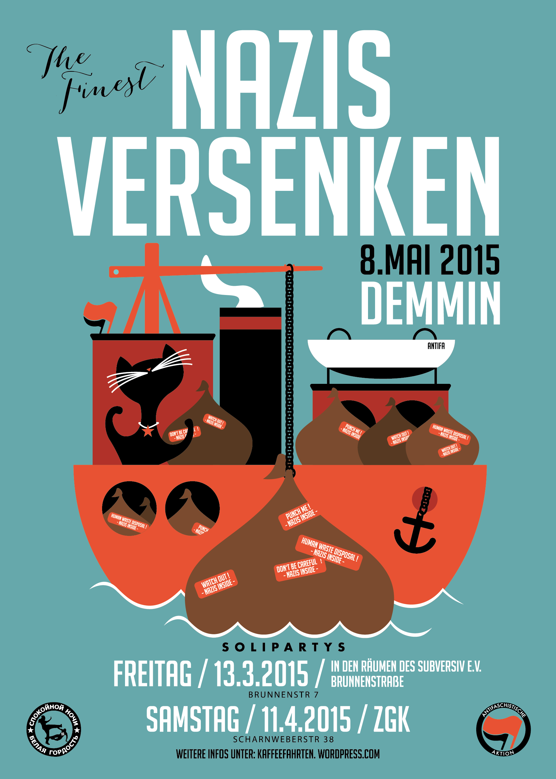Zu Gegenaktionen gegen die Neonazis mobilisiert neben Demmin Nazifrei auch ein Bündnis aus Defiant Antifa Greifswald und Antifa Rostock in ganz Norddeutschland. Auf zahlreichen Veranstaltungen u.a. in Hamburg, Lübeck und Rostock haben Aktivist_innen Informationen zum Antifa-Aktionstag am 8. Mai in Demmin gegeben. Auf der Webpräsenz der Antifa Rostock findet ihr unter der Rubrik Demmin auch einen längeren Aufruf zum 8. Mai. Für Rostock ruft das Bündnis zu einer gemeinsamen Busanreise auf. Städte wie Hamburg,Stralsund,Neubrandenburgoder Greifswaldfolgen dem Aufruf und organisieren ebenfalls Busse nach Demmin.