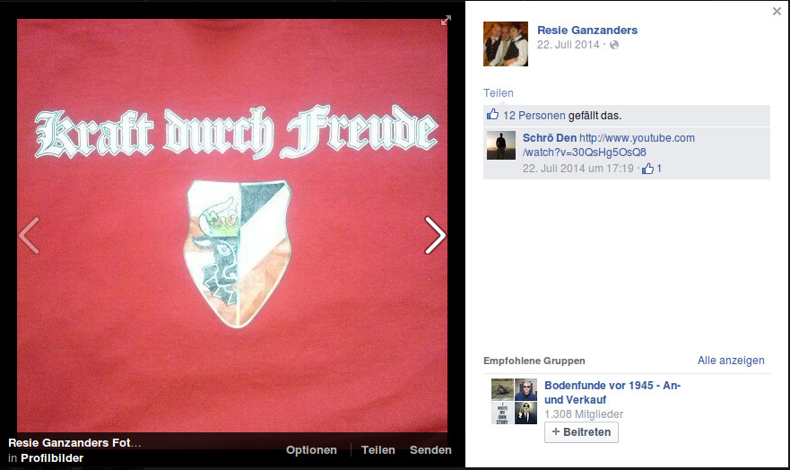 So gibt es dort ein Bild eines Kleidungsstücks, mit der Aufschrift “Kraft durch Freude”. Die Nationalsozialistische Gemeinschaft “Kraft durch Freude” (KdF), diente unter dem NS-Regime dem Zweck, die Freizeit des deutschen Volkes zu gestalten, zu überwachen und gleichzuschalten. Sportliche Betätigung war ein nicht unwesentlicher Teil der KdF um ideologischen Zusammenhalt zu fördern und nicht zuletzt die Kriegsbereitschaft des deutschen Volkes aufrecht zu erhalten. Somit ist es nicht gerade verwunderlich, dass sich ein neonazistischer Jugendtrainer damit identifiziert.