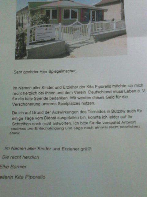 Weiterhin hat der DML e.V. mit “Netzradio Germania” personelle und inhaltliche Überschneidungen. https://www.facebook.com/hendryk.reinke Henryk Reinke ist sowohl Moderator bei Netzradio Germania wie auch aktives DML e.V: Mitglied. Er ist für eine Spendeaktion des DML e.V. in Zusammenarbeit mit Netzradio Germania, an eine Kita in Bützow, verantwortlich und hat u.a. an seinem Arbeitsplatz Geldspenden gesammelt.(Foto: Kita-Danksagung) Darüber hinaus gab es mehrere Sachspenden/Sammelaktionen, die “deutschen Famlilien” zugute kommen und dem Verein einen harmlosen Anschein geben sollen. Was der DML e.V. unter deutschen Familien versteht ist offenkundig. Schließlich fällt der DML auf Facebook permanent mit rechten Inhalten auf, macht Werbung für Nazidemonstrationen und organisiert eigene politische Veranstaltungen für Neonazis.