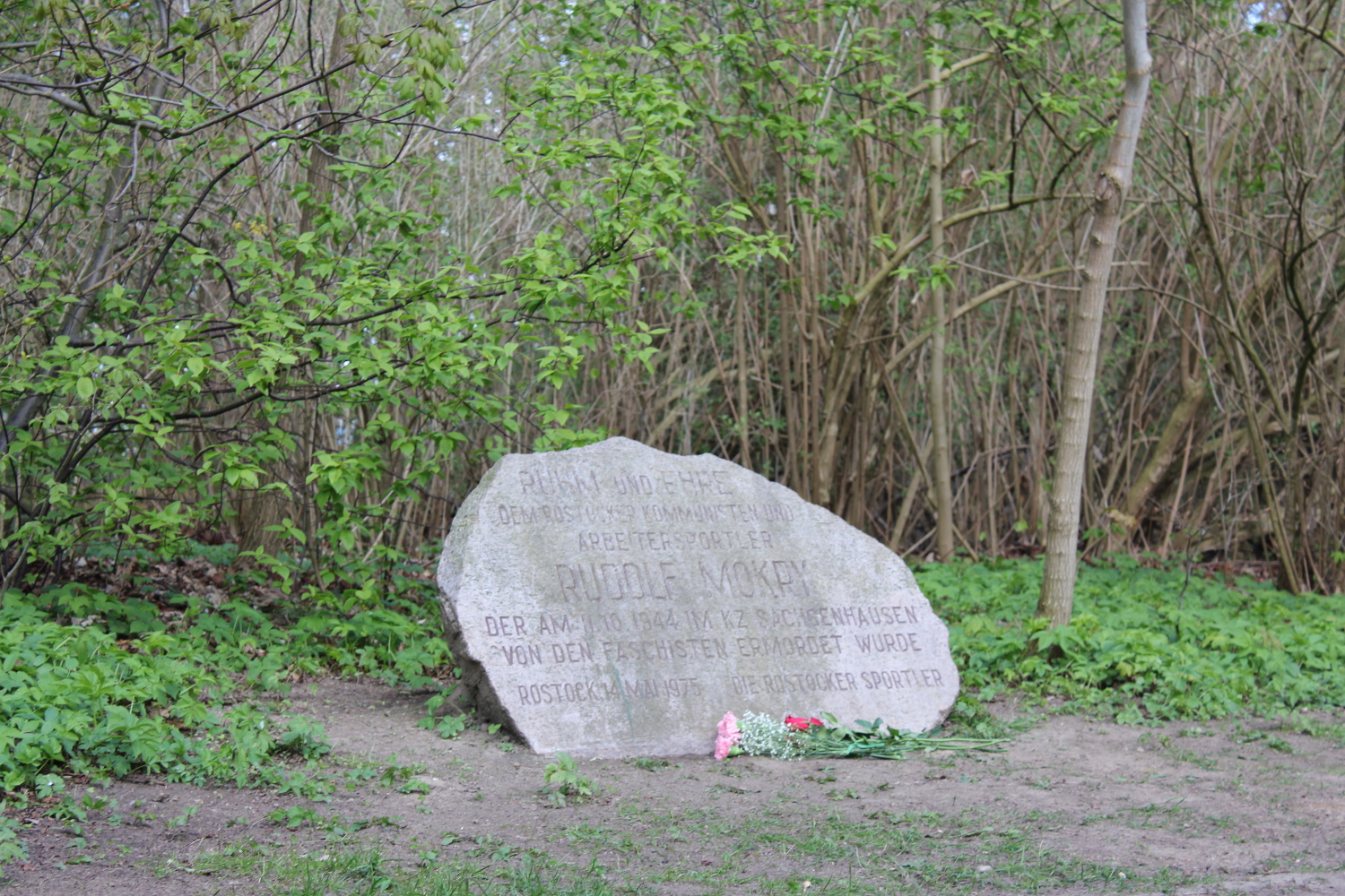 Ruhm und Ehre dem Rostocker Kommunisten und Arbeitersportler Rudolf Mokry der am 11.10.1944 von den Faschisten im KZ Sachsenhausen ermordet wurde