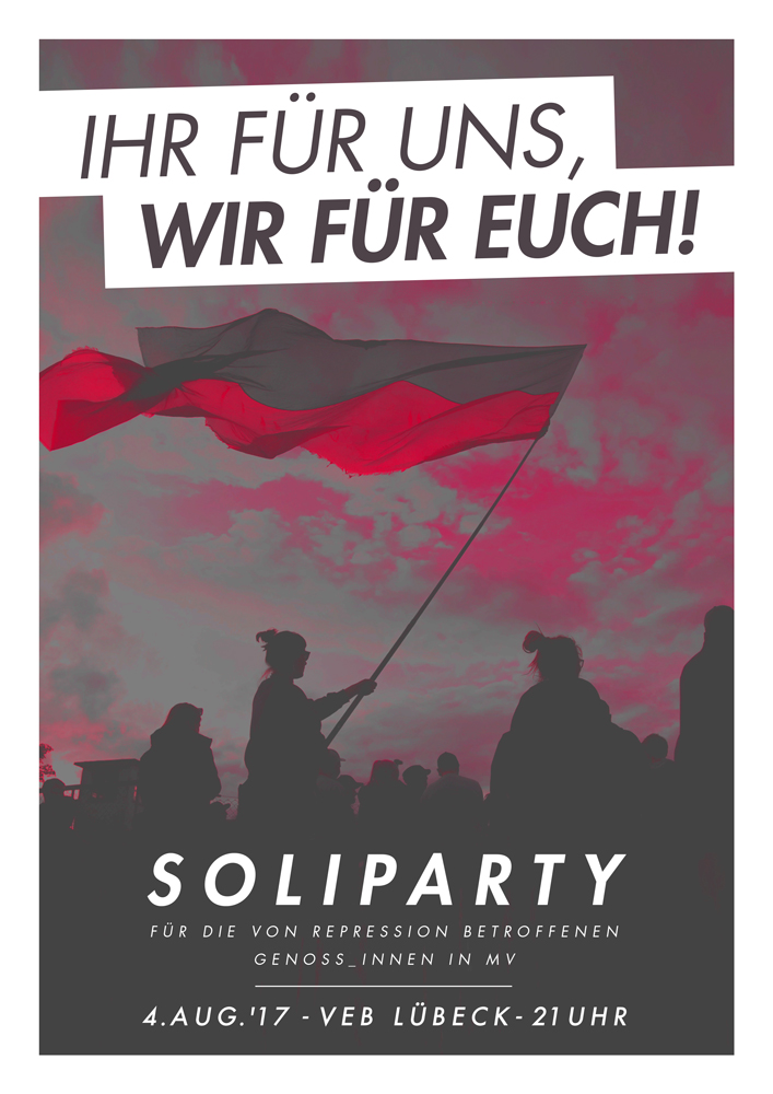 Wie immer liegt es an uns selber praktische Solidarität zu leben. Wir wollen mit euch zusammen die Genoss_innen in Mecklenburg-Vorpommern unterstützen und ihnen zur Seite stehen, wenn die hässliche Fratze des Staates und seinen Helfer_innen glaubt ihre Macht ungestraft zu demonstrieren.
