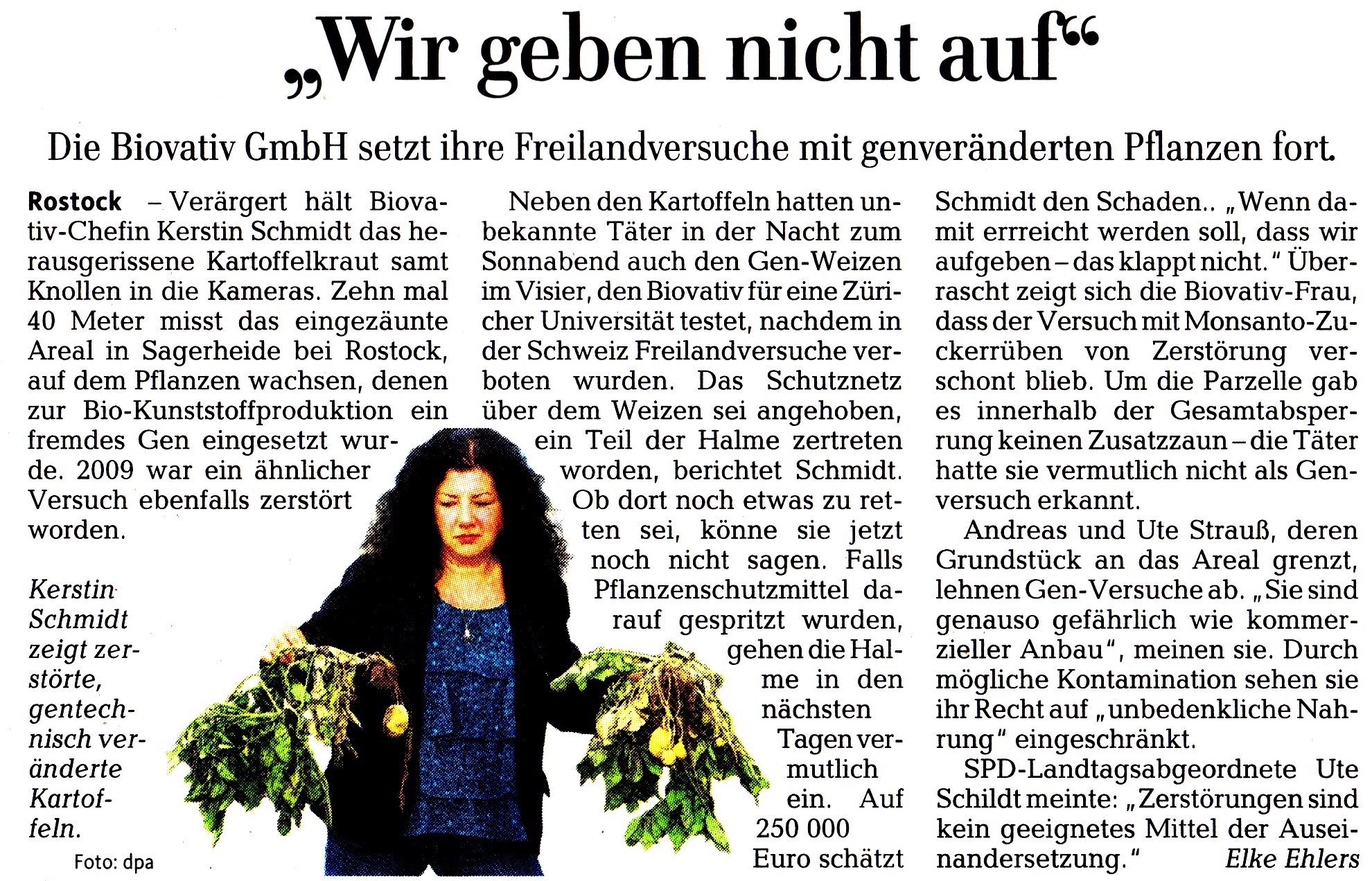 Anfang 2011 fand erstmals die Demo „Wir haben es satt“ mit 20.000 Menschen in Berlin statt. Im Juni folgte die Bauernsternfahrt unter gleichem Motto. Dadurch wurde sichtbar, dass bislang getrennte Protestbewegungen (Naturschutz, LandwirtInnen, Verbraucherschutz) an einem Strang zu ziehen begannen. Hinsichtlich der Gentechnikfelder brachte die Atomkatastrophe von Fukushima zwar einen Rückzug der auf Medien- und Spendenanteile ausgerichteten Online-Kampagnen und NGOs aus dem Thema Gentechnik – aber umso erfolgreiche verliefen militante Aktionen. Denn bis auf drei Felder waren alle Anpflanzungen mit gentechnik veränderten Organismen (GVO) auf zwei Orte zusammengefasst. Die waren hochbewacht – von Wachschützern, technischen Einrichtungen und einer im Hintergrund mit erheblichem Aufwand bereitstehenden Polizeiarmada. Doch unbekannte AktivistInnen zeigten im Juli 2012 eindrucksvoll, dass Bewachung, Sicherungsanlagen und Kumpanei mit den staatlichen Truppen allein nicht schützen. Sowohl die Versuchsanlagen am AgroBioTechnikum (am Dorf Sagerheide östlich Rostock) als auch im Schaugarten Üplingen (Börde) wurden böse erwischt.