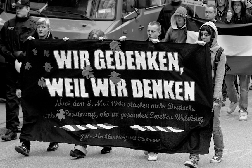 Mai 2003 Rostock: Roland Horn (2.v.l.) und spätere JN-Aktivist Friedrich Tinz (1.v.r.)