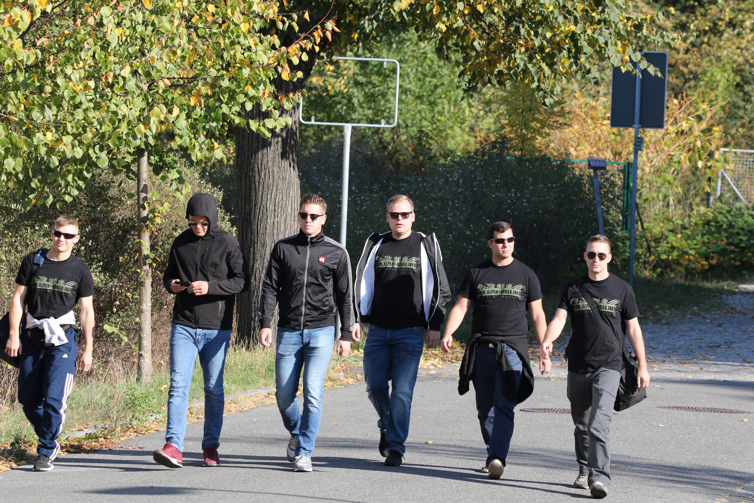 Kämpfer aus Österreich und deren Anhang bei der Anreise in Ostritz (Quelle: Pixel-Archiv)