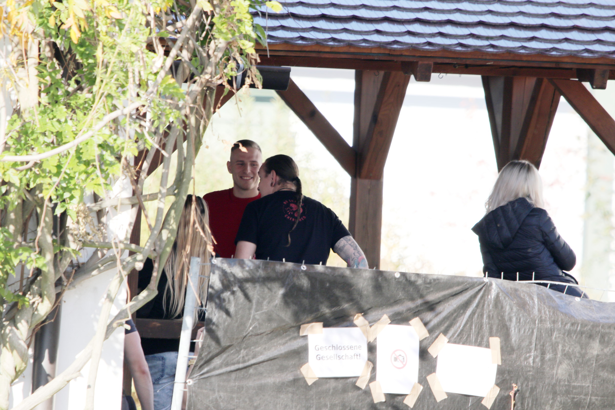 1.v.l., hinter dem Bauzaun versteckt: Stefan Baer, 1.v.r. Robert Jäsche (Quelle: Pixel-Archiv)