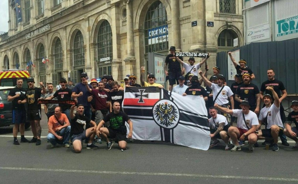 Die dort von den sächsischen Hooligans mehrheitlich getragenen „Fischerhüte“ mit dem Aufdruck „Könige Europas“ konnte man auch auf den jüngsten rassistischen Mobilisierungen in Chemnitz bei einigen der Teilnehmern erkennen. Im Pulk in Lille 2016 war zudem der rechte