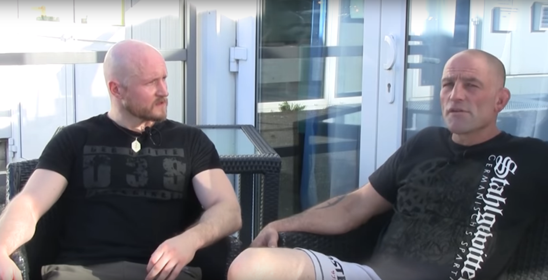 Frank Krämer (links) stellte in seinem Videoblog den „Asgard Fight Club Vettelschoss“ vor. Rechts im Bild der Betreiber dieses Gyms, Jochen Grüber (Quelle: Screenshot YouTube)