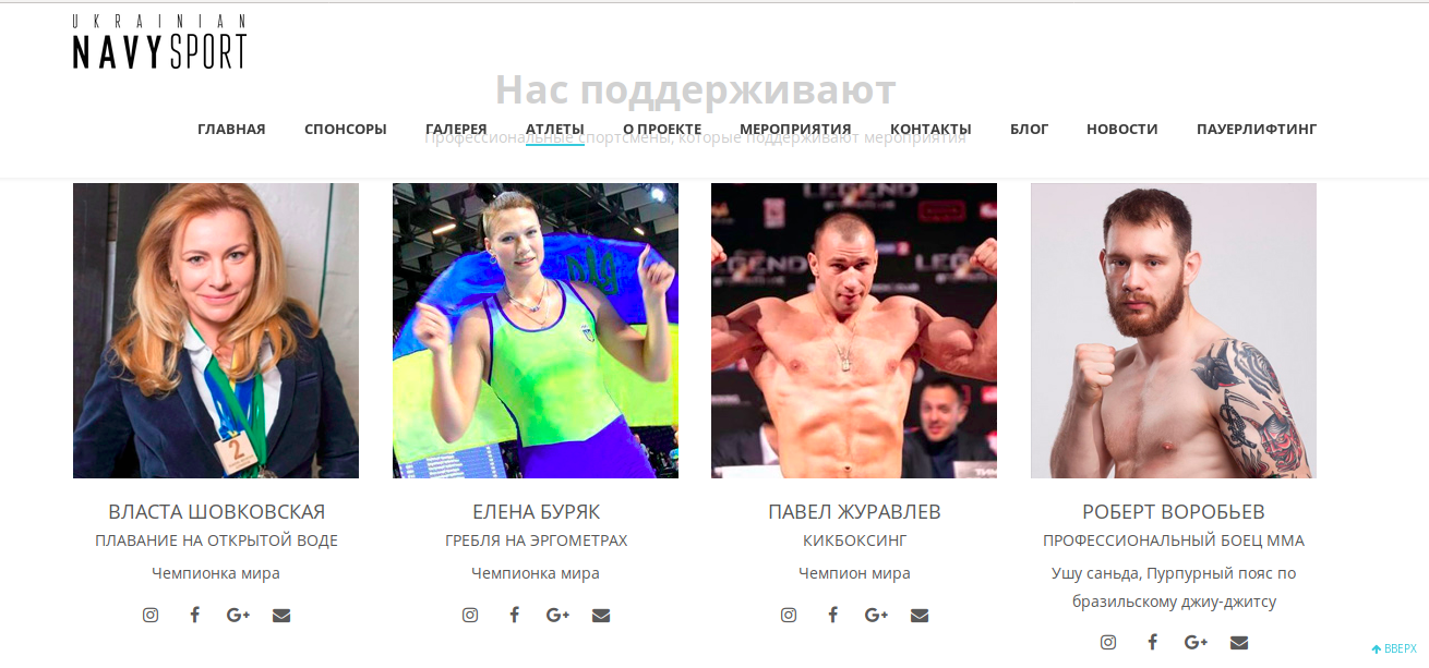 Auf der Webpräsenz der Sportabteilung der ukrainischen Marine als unterstützender Athlet aufgeführt: Robert Vorobyov (1.v.r.) (Quelle: Screenshot der Website „UA Navysport“)