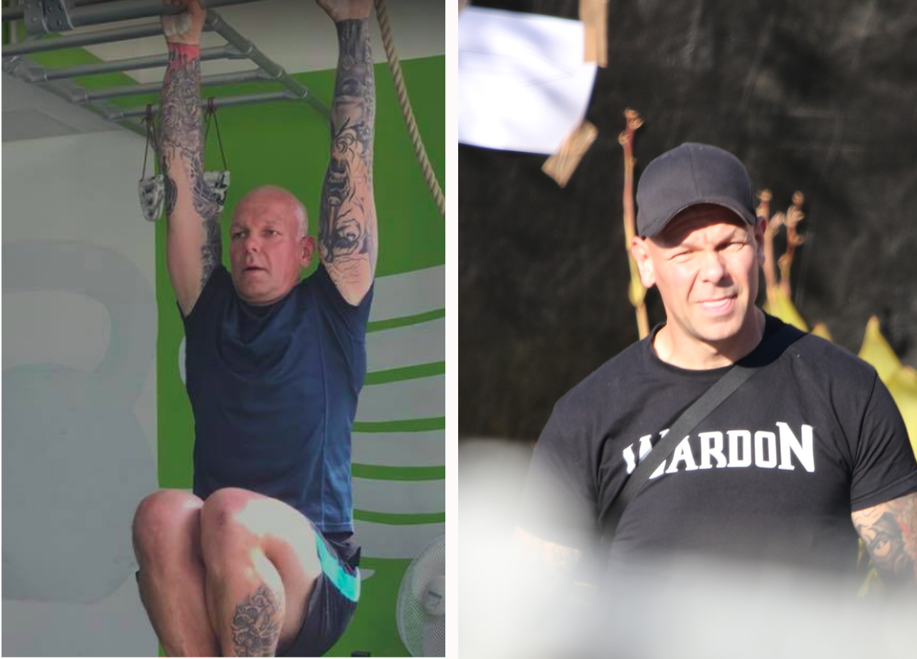 Mario Kleibert: links beim Training und rechts als Abgesandter von „Wardon 21“ beim KdN im Oktober 2018 in Ostritz (Quelle: Pixelarchiv)