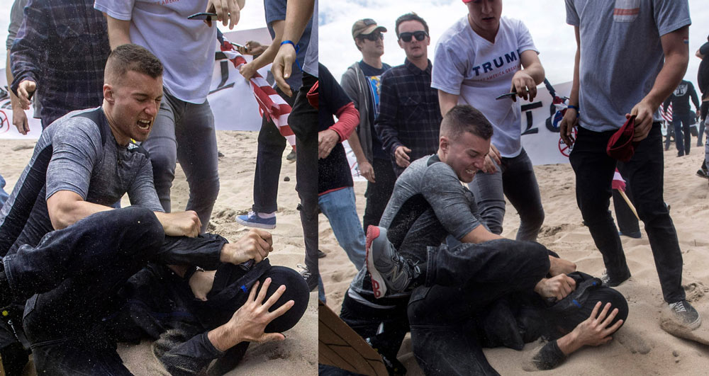 Robert Rundo bei einem Angriff auf Gegendemonstrant*innen in Huntington Beach (Bild: )